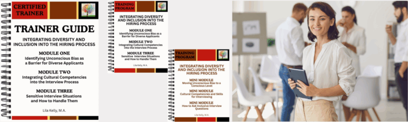- Three main modules on Integrating Diversity and Inclusion into the Hiring Process program with Trainer prompts